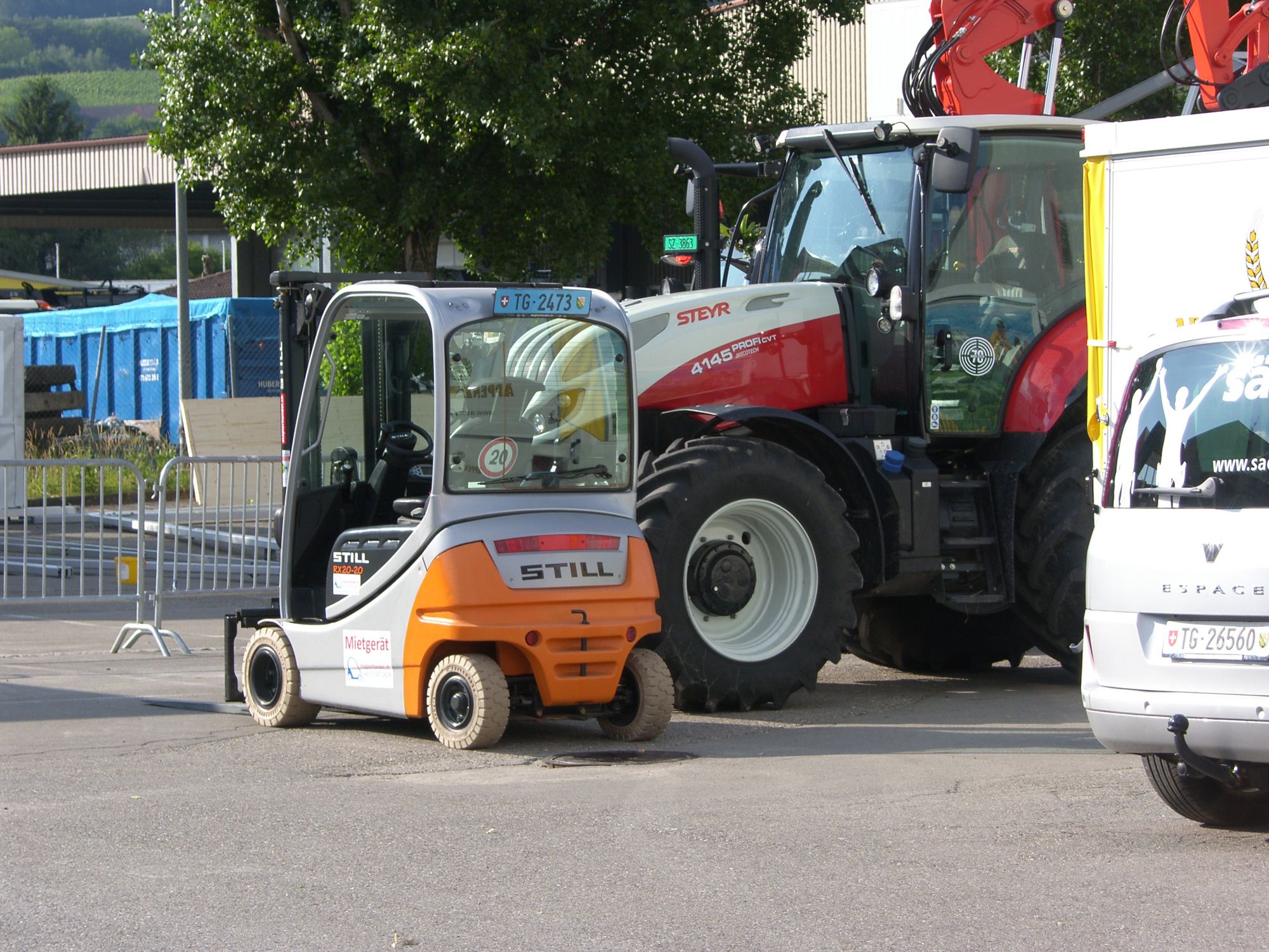 Unser RX20-20P Mietstapler mit Strassenverkehrsschild...